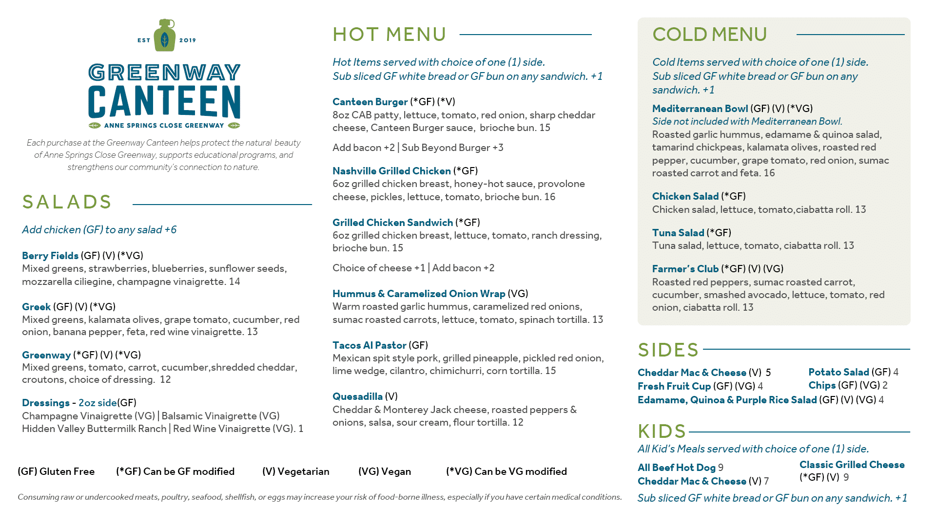 Canteen Full Food Menu TV Spring 2025