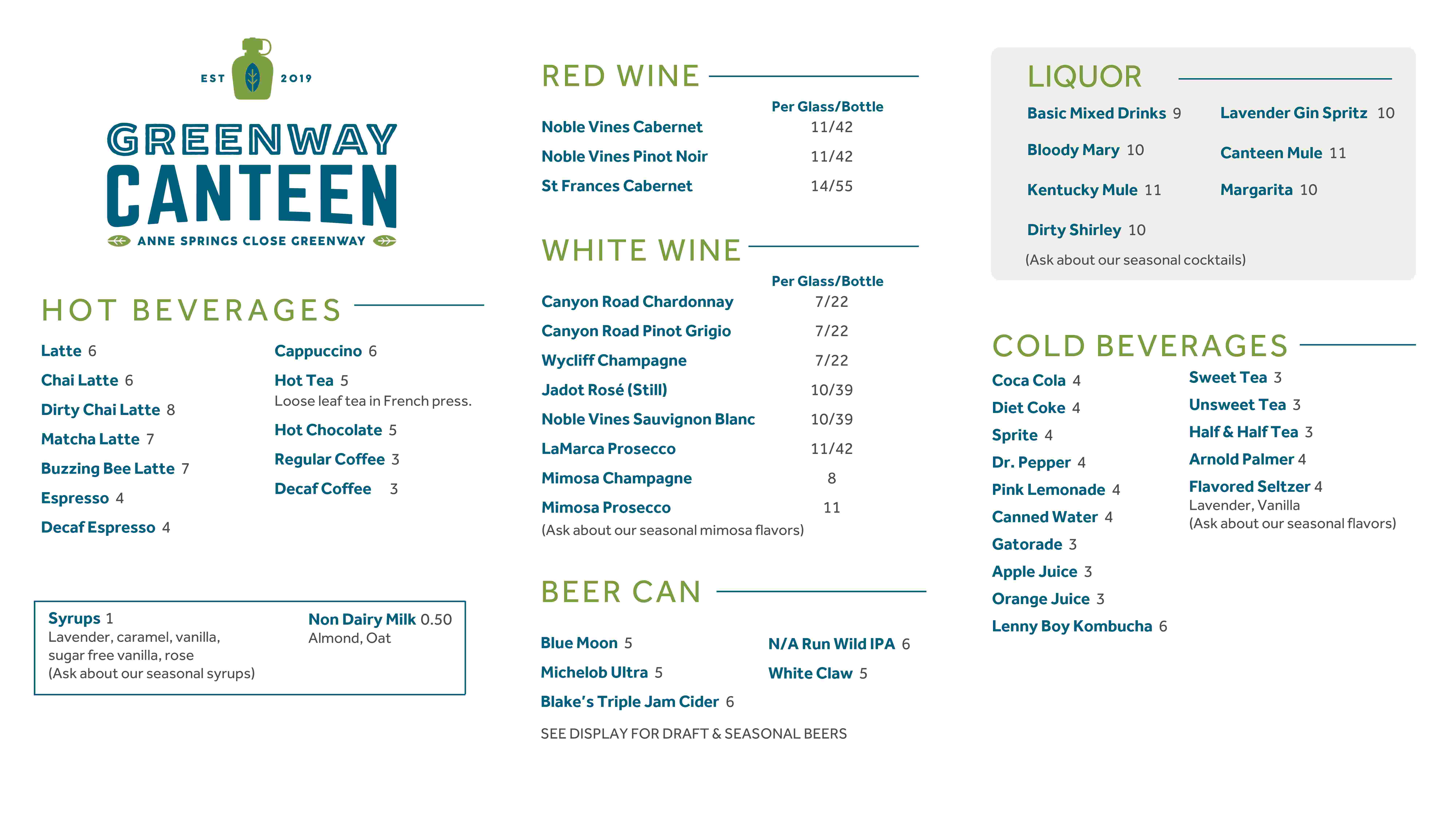 Canteen Menus TV Spring 2026 Drink Menu