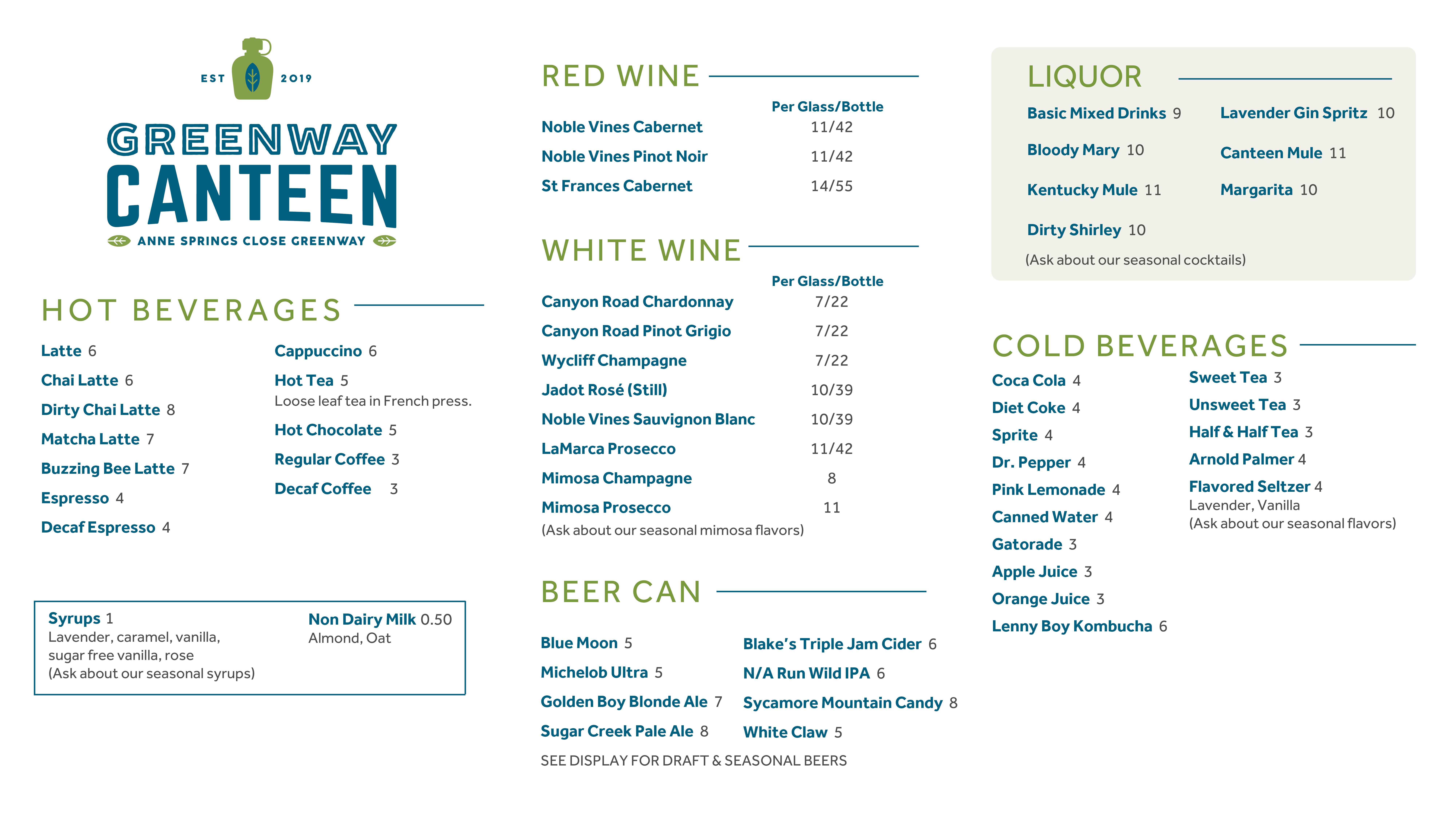 Canteen Menus TV Winter 2025 Drink Menu