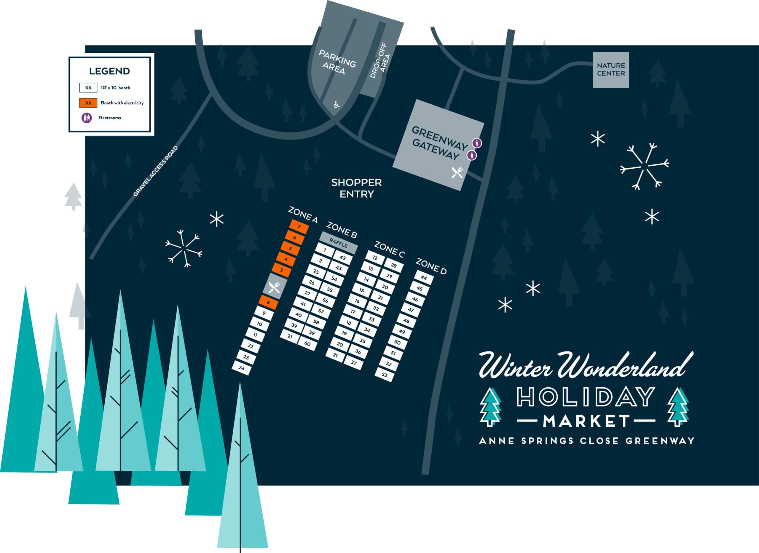 alt=Map of the Winter Wonderland Holiday Market at Anne Springs Close Greenway